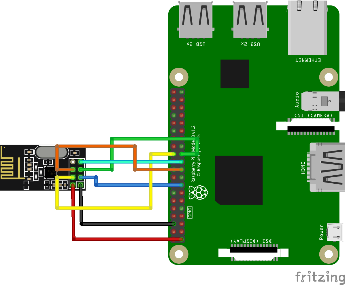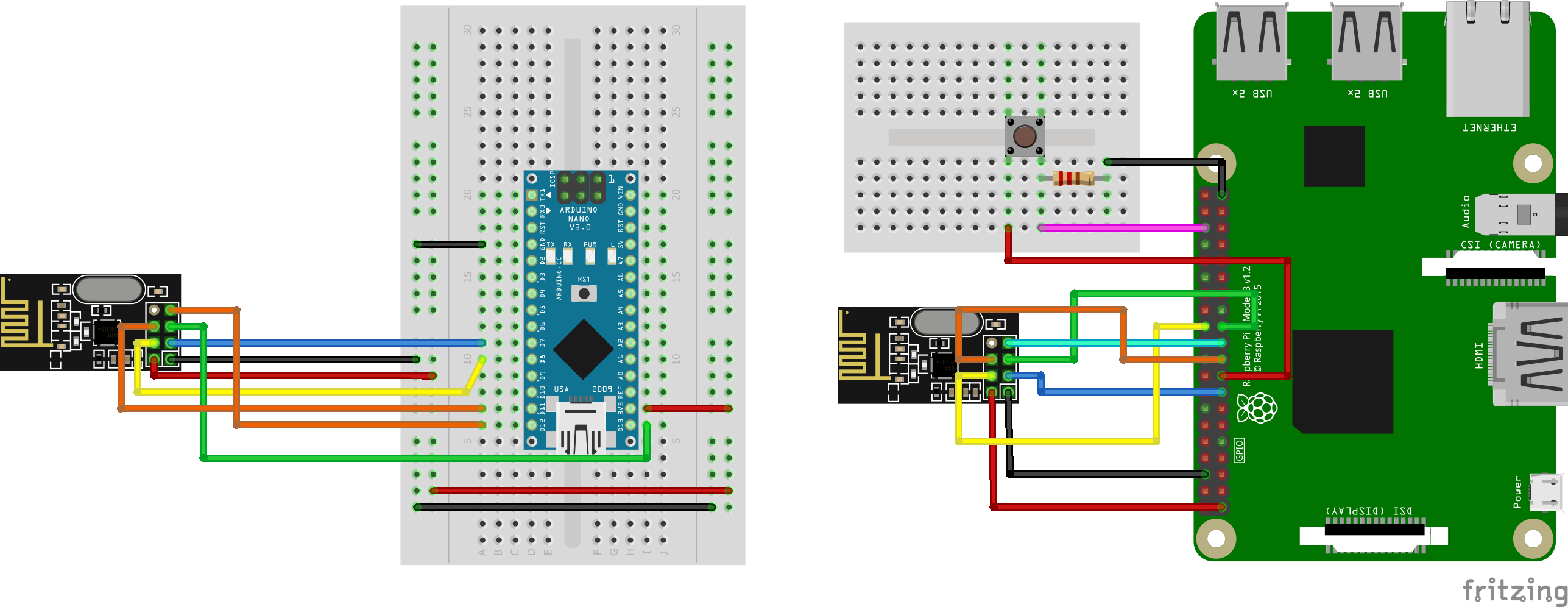 Ursprünglich hatte ich vor eine eigene 433 MHz Bibliothek für Raspberry Pi und Arduino zu schreiben. Der Nachteil daran ist aber, dass pro Signal nur maximal 32 Bit in der 433 MHz Frequenz verschickt werden können. Dadurch ist ein Protokoll wie z.B. TCP-IP nicht zu realisieren. Mit 2.4GHz hingegen können genug Bits versendet werden, was auch der Grund ist, dass die Standardfrequenz von WLAN Routern und Empfängern darauf liegt.