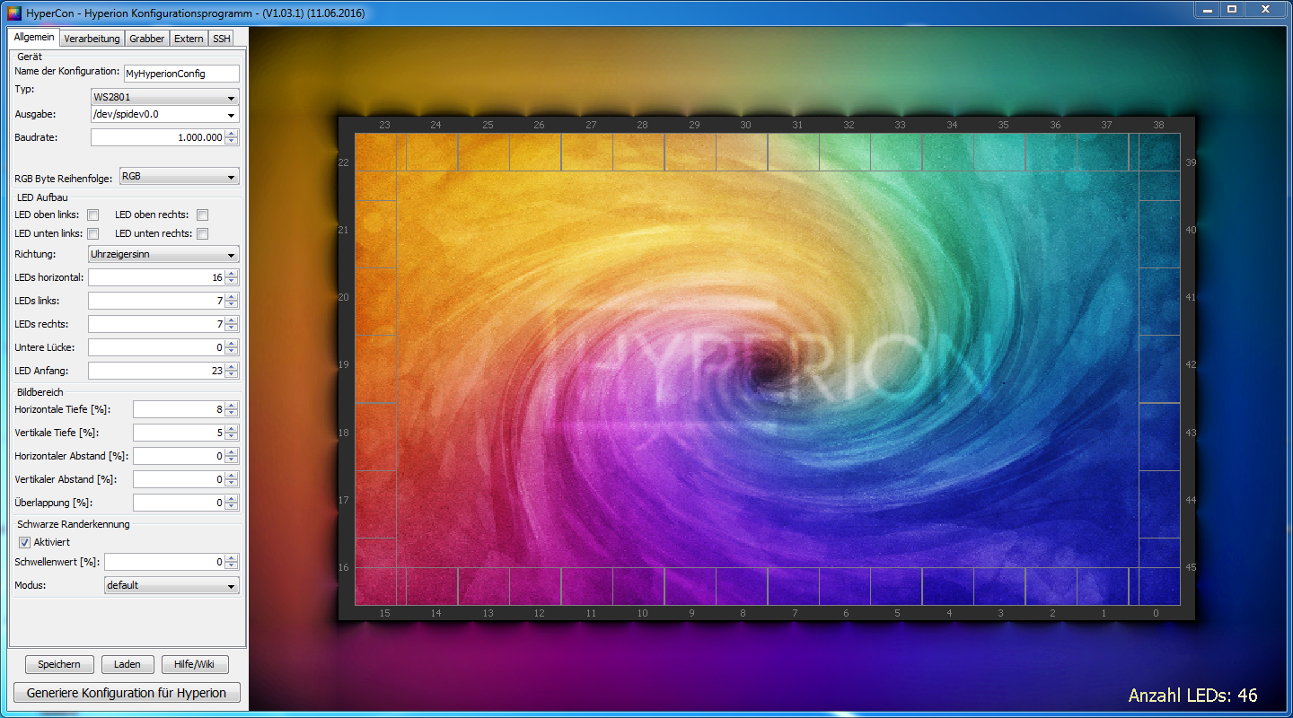 Hallo, ich habe soweit alles erfolgreich installiert. Allerdings leuchten nur ein paar einzelne LED’s auf, „Hole Bild vom Grabber“ zeigt mir allerdings das richtige Bild an. Die Farben etc. kann ich über Hyperion (Auch über die App) wechseln, allerdings ohne Ergebnis. Die Pfade oben existieren auch alle. Irgendjemand eine Idee woran es liegen kann? Habe das Projekt vor einigen Jahren schonmal am laufen gehabt, allerdings jetzt mit aktueller Hardware keinen erfolg mehr? Kann ich irgendwie testen ob die GPO Pins ggf. defekt sind??