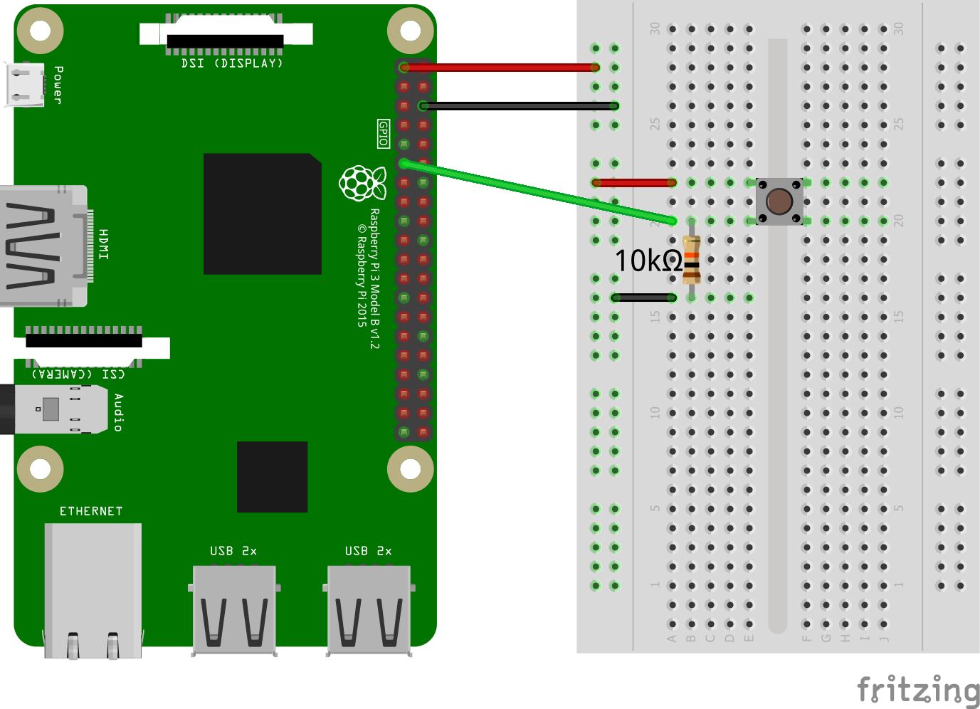 In einem vorherigen Tutorial haben wir eine Kamera auf Knopfdruck gebaut. Dieses Setup möchten wir nun erweitern, sodass wir das Bild direkt danach drucken. Fangen wir also zunächst mit dem Aufbau an: